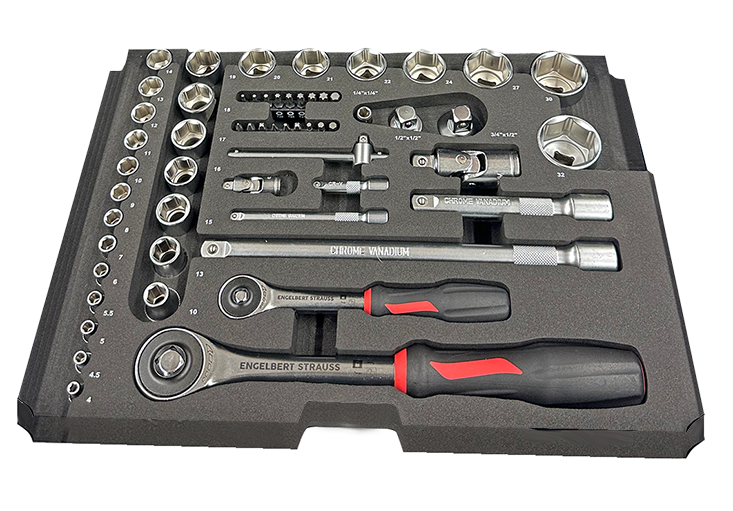 ● All parts in a foam insert, ideal for storing in tool cases or tool cart drawers.
